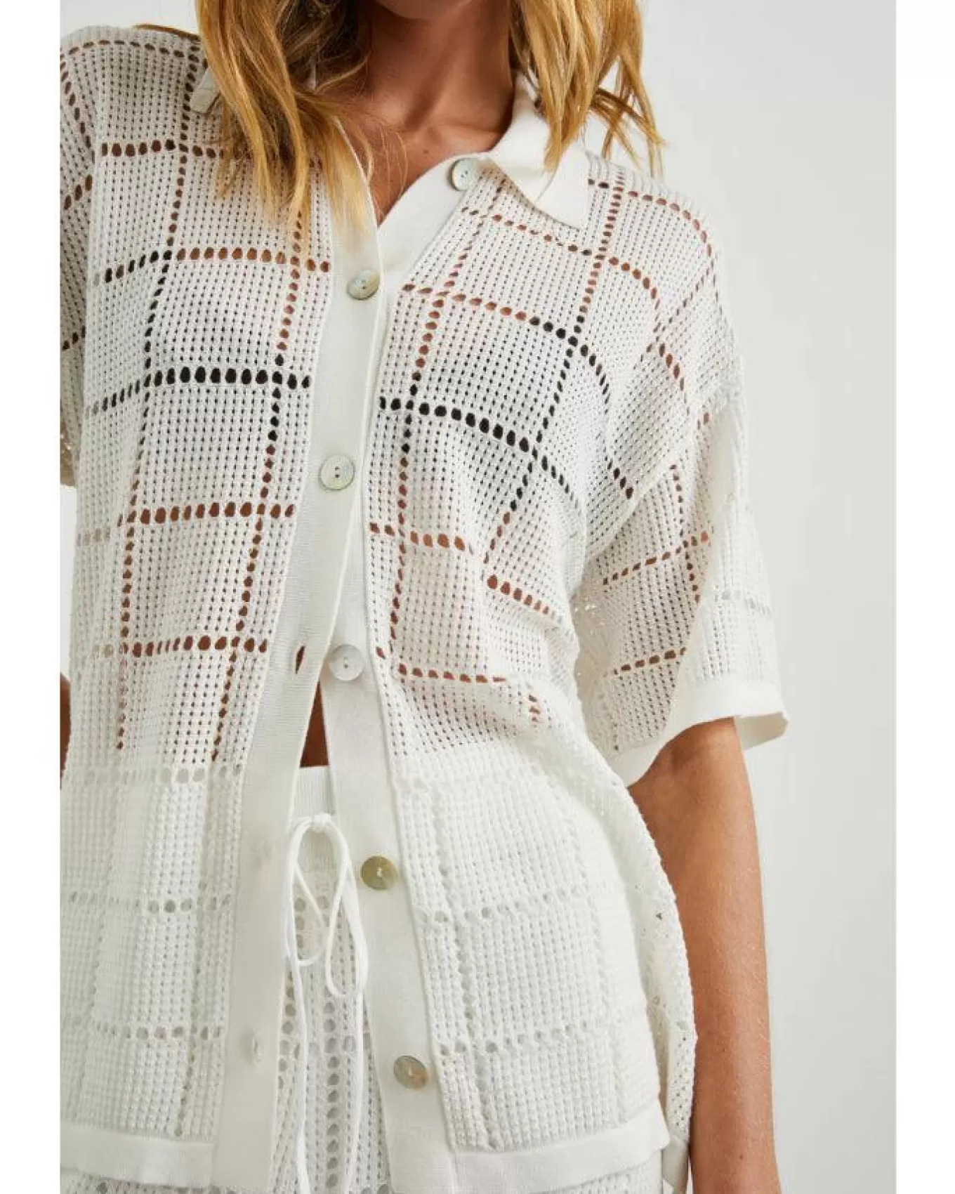 Rails boxy fit, super soft organic cotton blend top in an open-stitch grid design with button down front, classic collar…