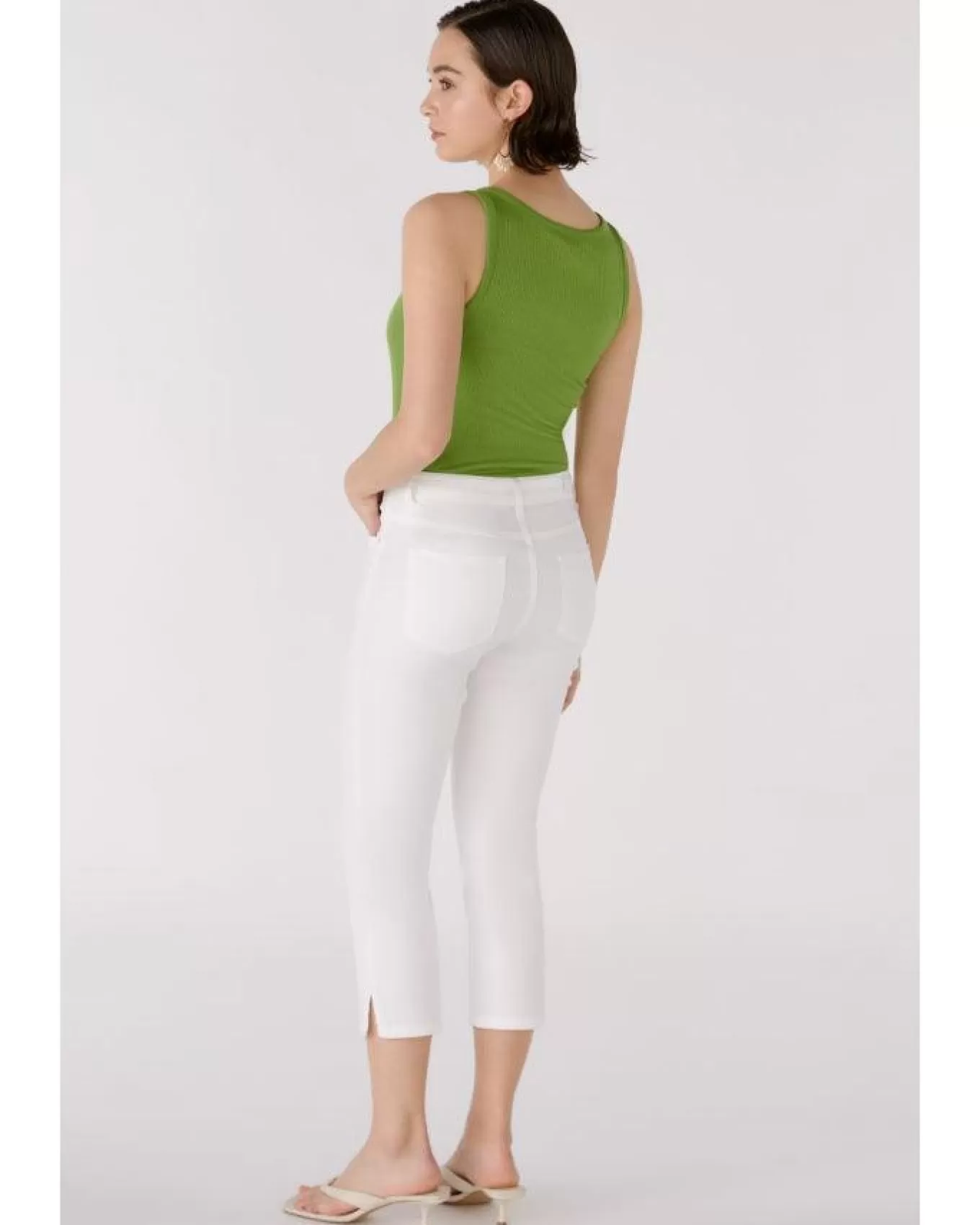 Oui slim fit classic five pocket capri pants with side slits at hem and button and zip closure.
