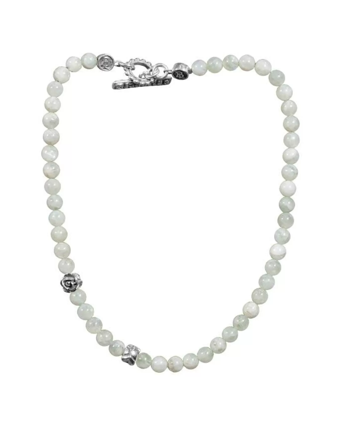 Bloodline Design double wrap bead bracelet features a sterling silver rose bead and a trilogy bead with 6mm gemstone beads on a multi-strand stainless steel cable and double crimped for exceptional strength and wear-ability. Solid Sterling Silver toggle clasp.
