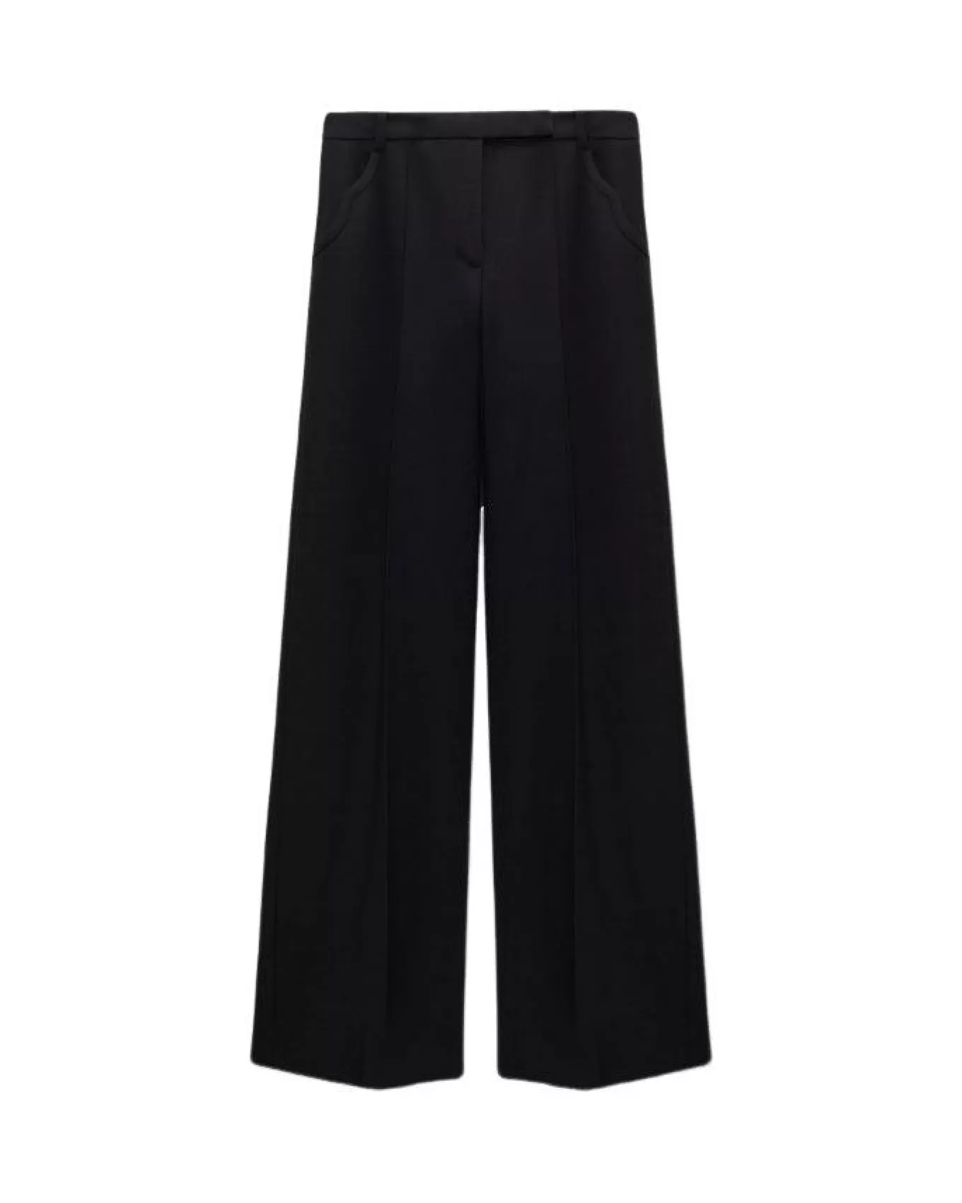 Dorothee Schumacher wide leg pants in Punto Milano with pressed front pleats, extended tab and zip closure, Western inspired curvy side pockets and back welt pockets.