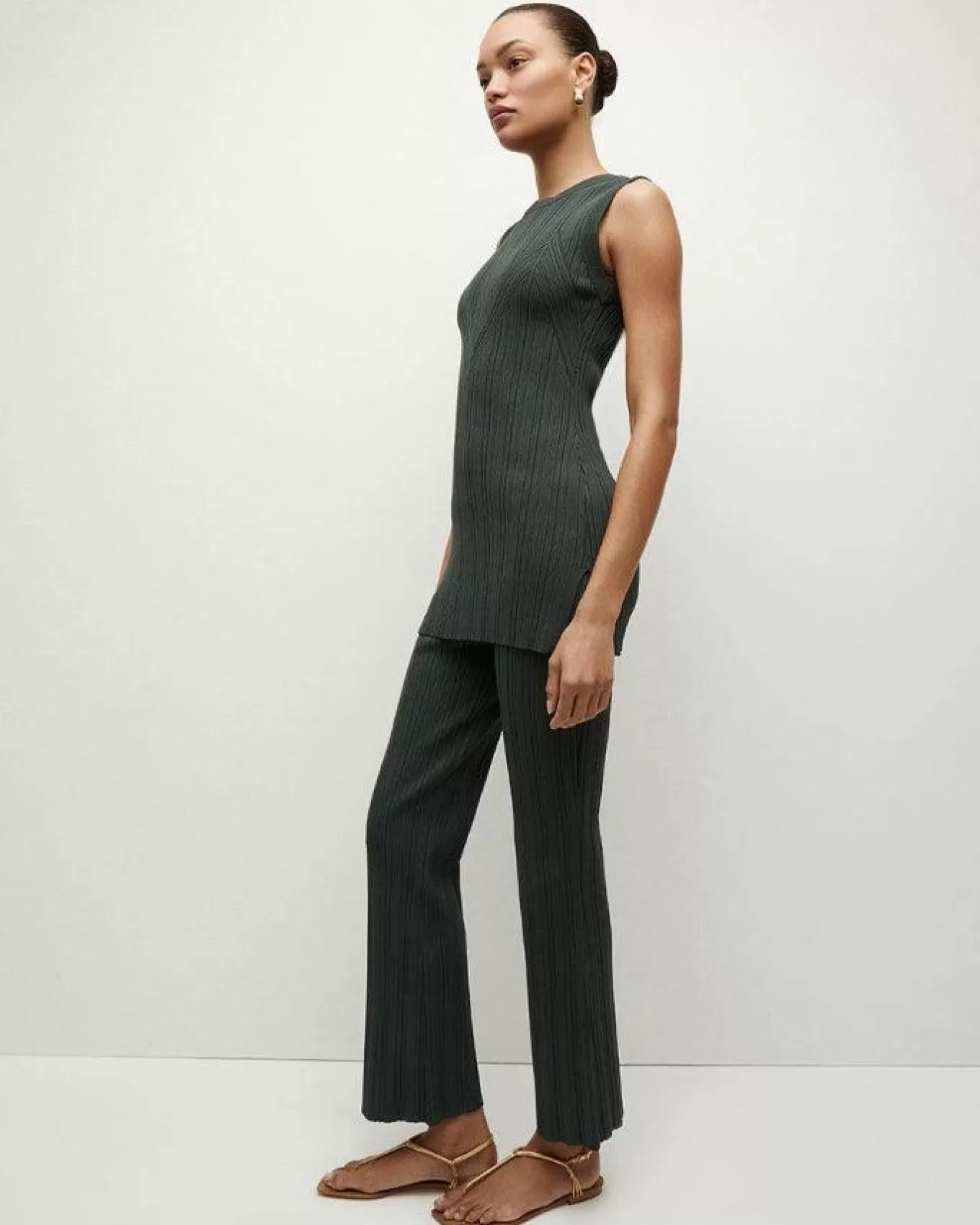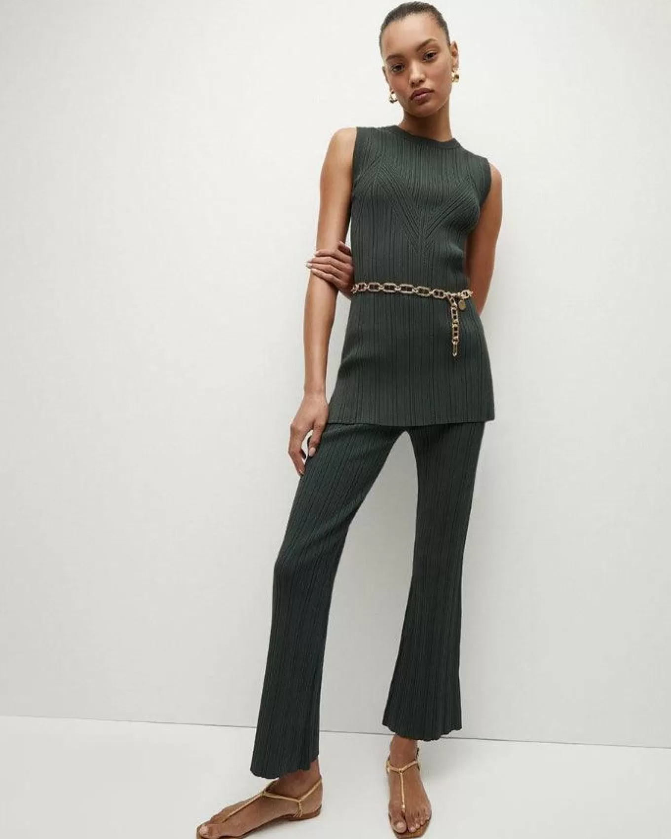 The textured ribbing adds a touch of elegance, visually elongating the legs, making you look and feel your absolute best. With a rise of 9 inches and an inseam of 28 inches in Size S, these pants are designed to fit seamlessly into your wardrobe, perfect for any occasion that calls for a blend of chic simplicity and effortless style. It ensures a perfect match for your refined taste. Embrace a look that celebrates your unique elegance with the Massaro Pant.