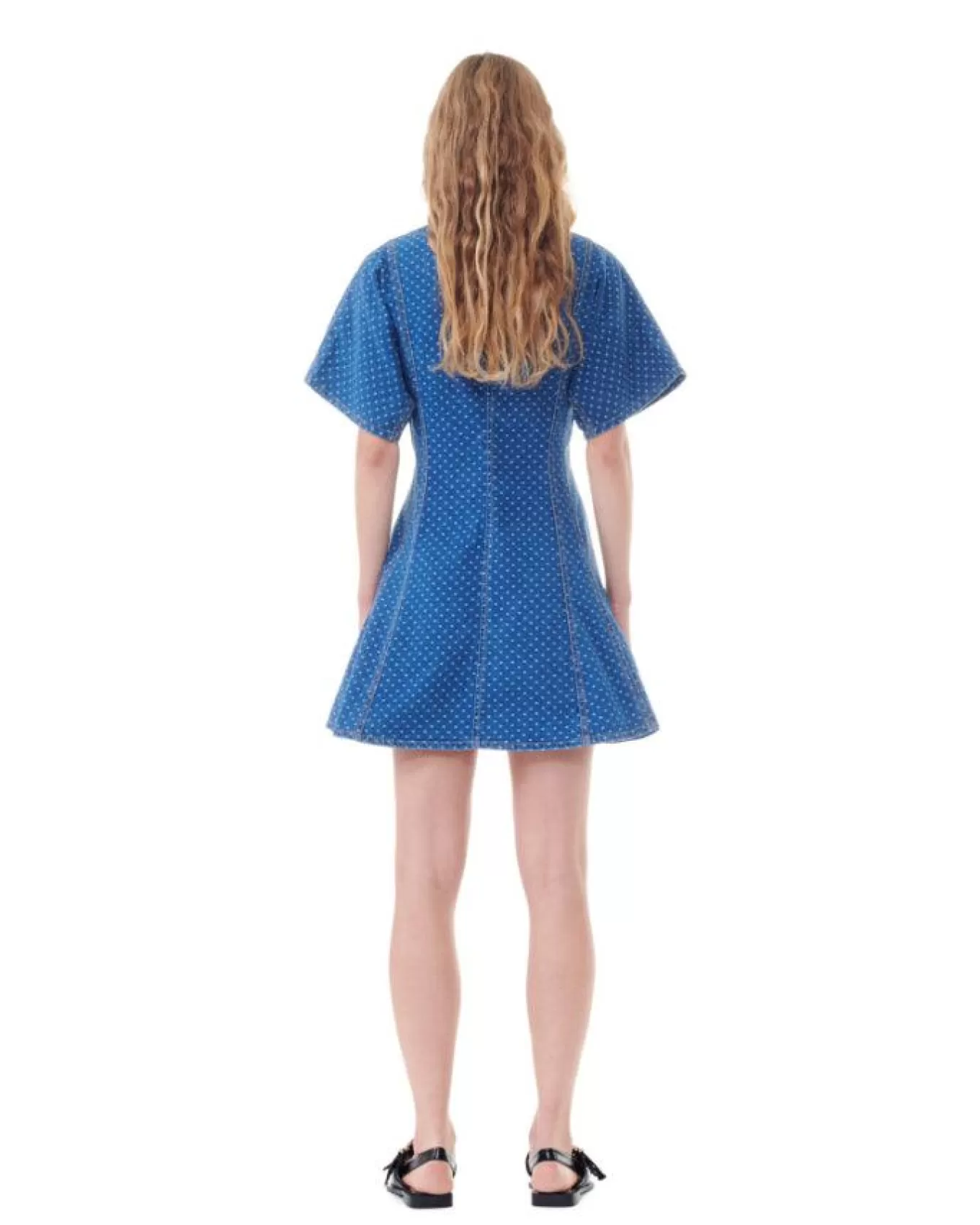 Polka Dot Denim Mini Dress<Ganni Flash Sale