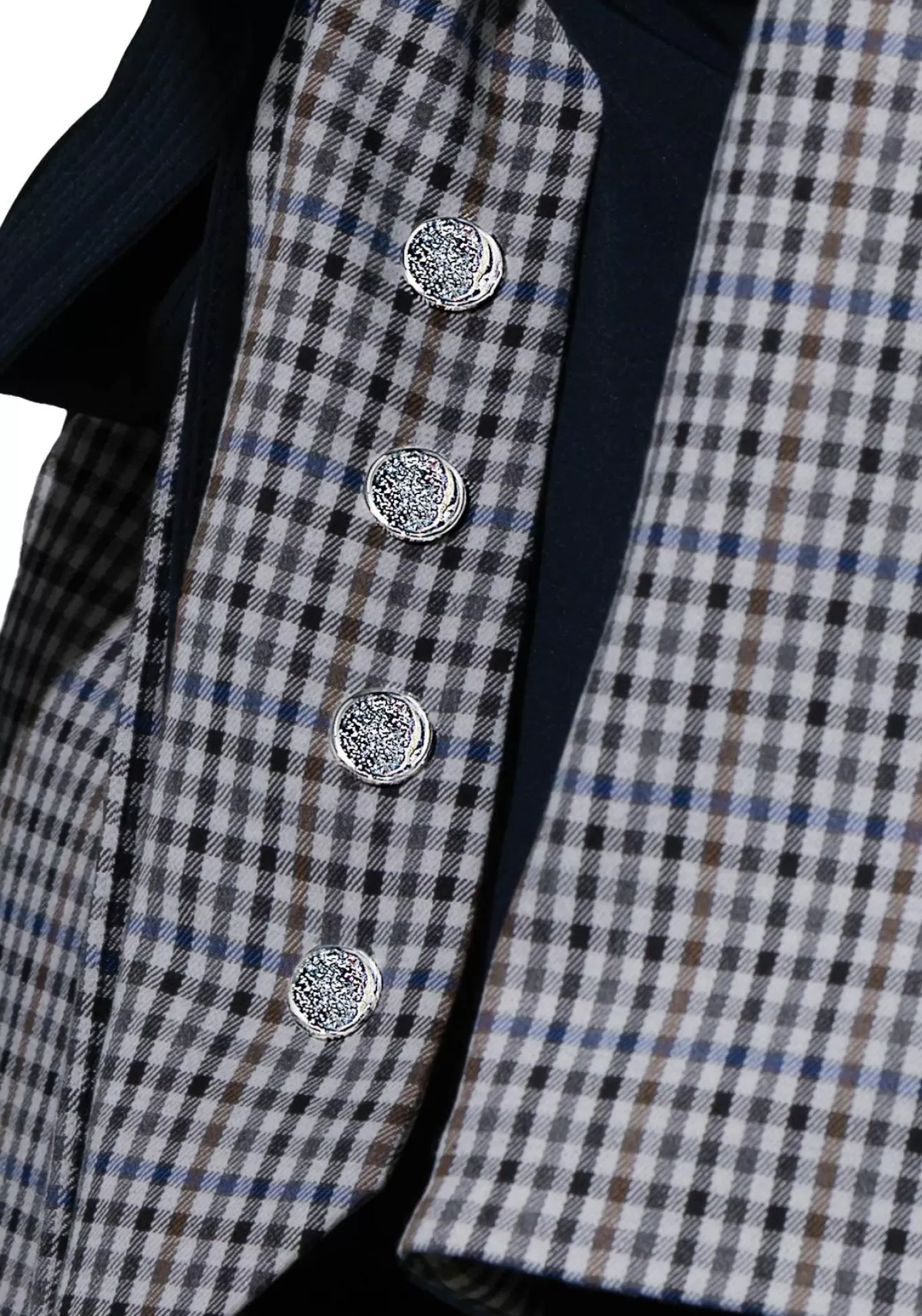 Super functional relaxed fit double breasted check print dickey jacket with contrast trim at shoulders, right side lapel…